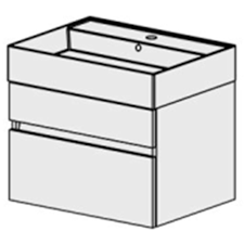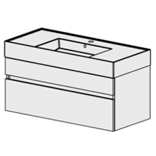 Table en céramique blanc, avec 1 lavabo au milieu, armoire à 2 tiroirs, avec Blumotion et liste décor, faces/côtés visibles selon code couleurs selon palette, inclus 1 sifon encombr. Réduit